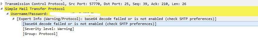 [Expert Info (Warning/Protocol): base64 decode failed or is not enabled (check SMTP preferences)]
