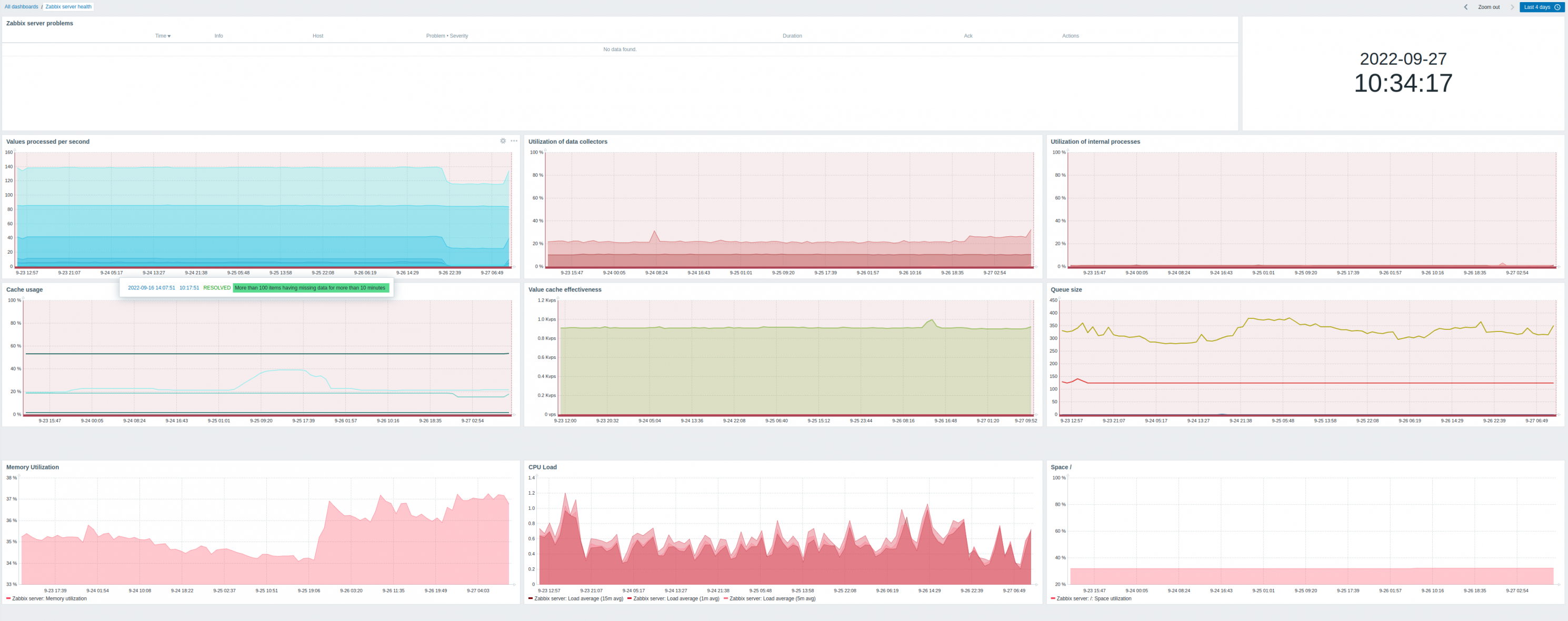 I don't see any problem created by zabbix server itself except "More than 100 items having missing data for more than 10 minutes" (attaching image)