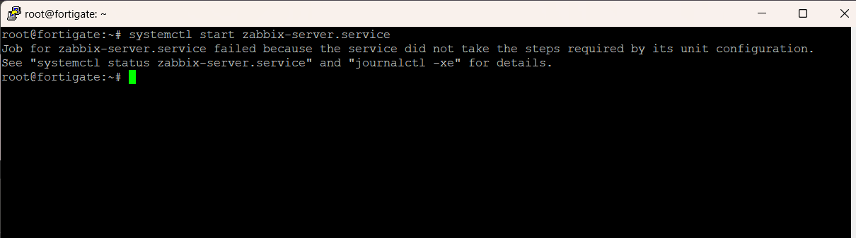 root@ubuntu-zabbix:~# sudo systemctl start zabbix-server Job for zabbix-server.service failed because the service did not take the steps required by its unit configuration.