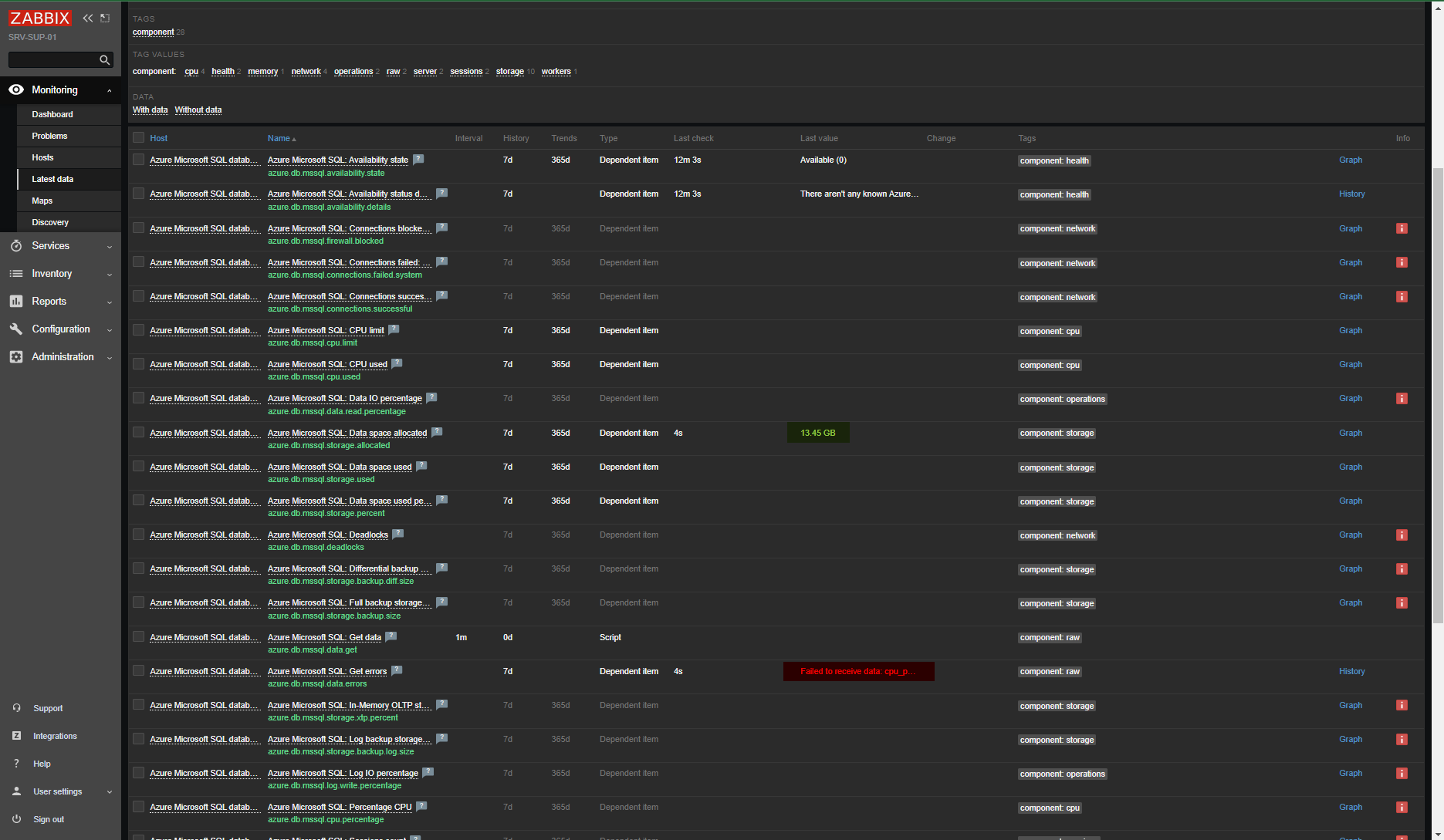 We're using Azure SQL managed instances, but when we tried to use Azure Microsoft SQL Serverless Database by HTTP, doesn't work can't get all the data. If anyone found a way to fix, please send us some image your Azure setup and Zabbix setup step by step to guide us, thank you.