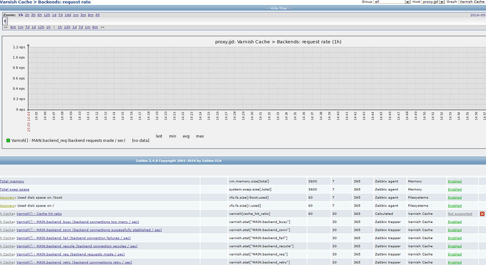 I am running Zabbix 2.4.8, Varnish 4.0.3 and try to monitor Varnish by applying varnish cache template from https://github.com/allenta/zabbix-te...-varnish-cache.