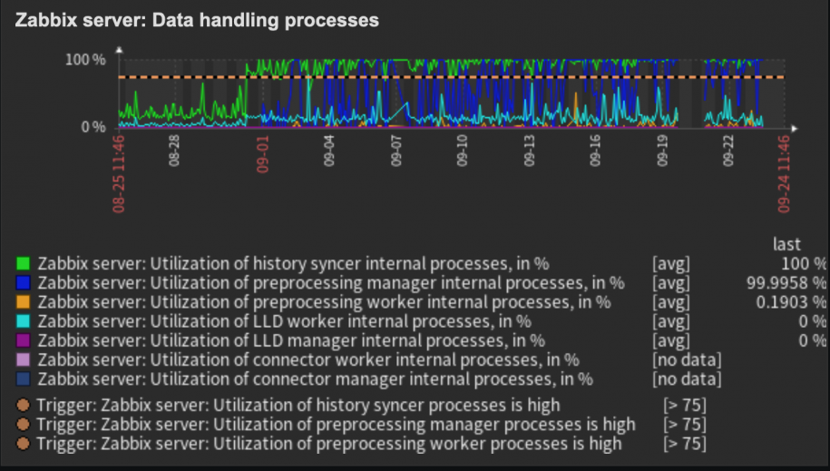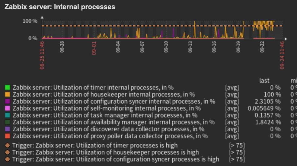 since a while my Zabbix Server 6.4.6 has some very busy processes (the Zabbix proxy 6.4.6 has no problems at all), the root cause why this started to happen is unknown. The Z server is not able to keep up and at some point just is complaining constantly.