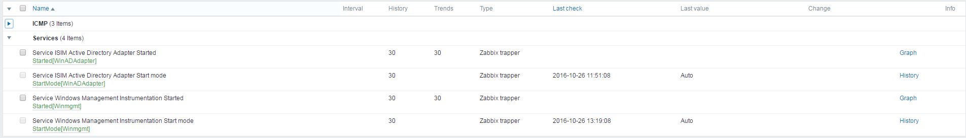 ./zbxwmi 10.2.0.233 Started DisplayName Win32_Service -f "DisplayName = 'ISIM Active Directory Adapter'" -D [domain] -U [user] -P [password]