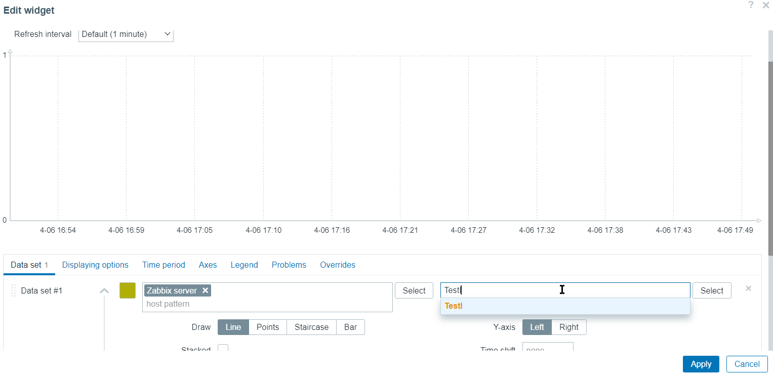 3. I can add the item to a dashboard, I tried Top Hosts and Item Value, and it displays its values fine. But when I add the item to a graph, no values get plotted.