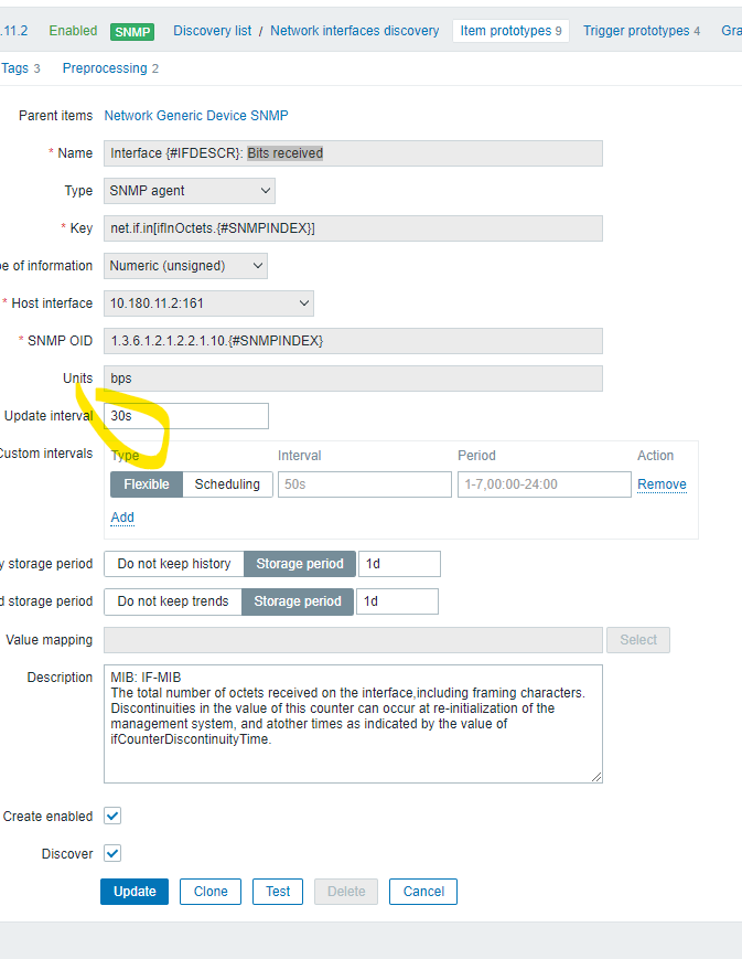 Is there anyone who can help me with changing the update interval of Bits received. I try changing it from the template--> item prototypes.