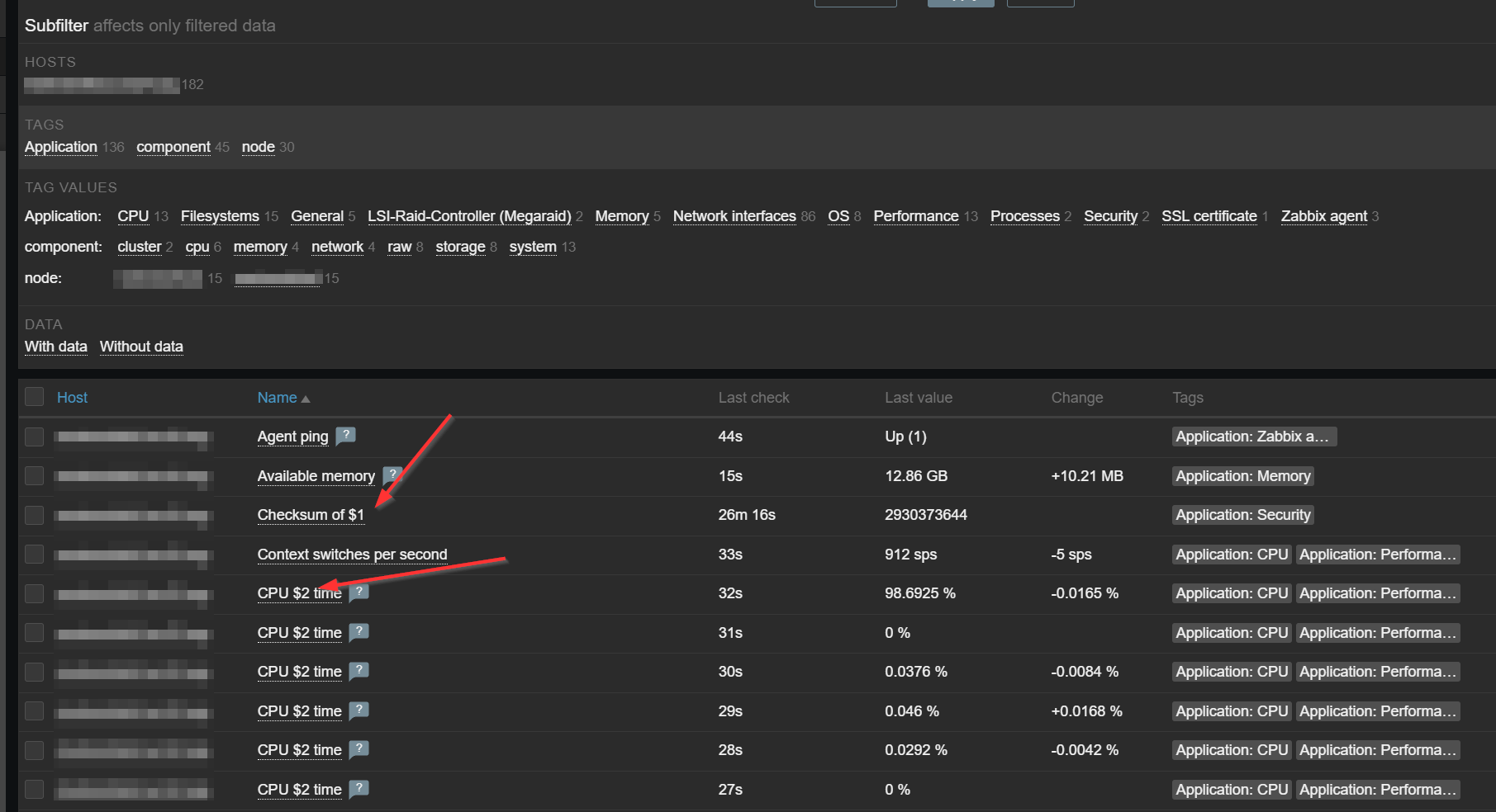 I am using Zabbix 6.4.18 with latest template for Proxmox-Hosts (see: https://www.zabbix.com/de/integrations/proxmox). Works fine. But when opening the report "Monitoring > Latest Data" I see some variables in some item names. For example I see "CPU $2 time". How can I fix it, please?