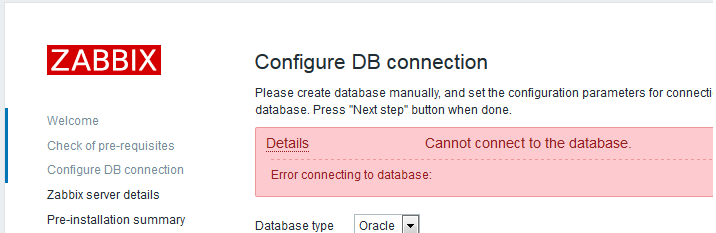 We are configure zabbix as back end Oracle DB up and running on other server.