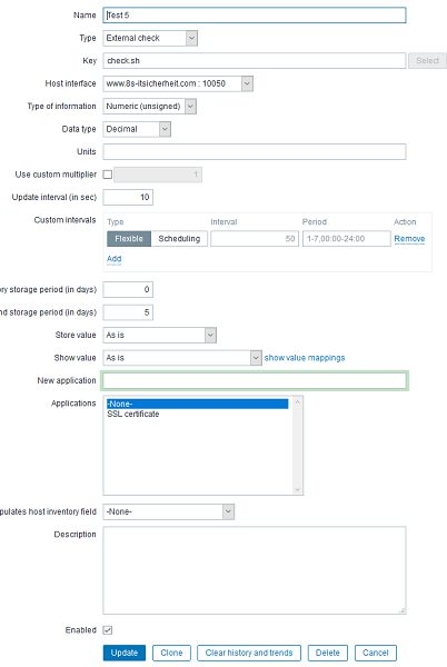 I'm trying to run an external script from Zabbix Server (3.2) to run SSL checks.