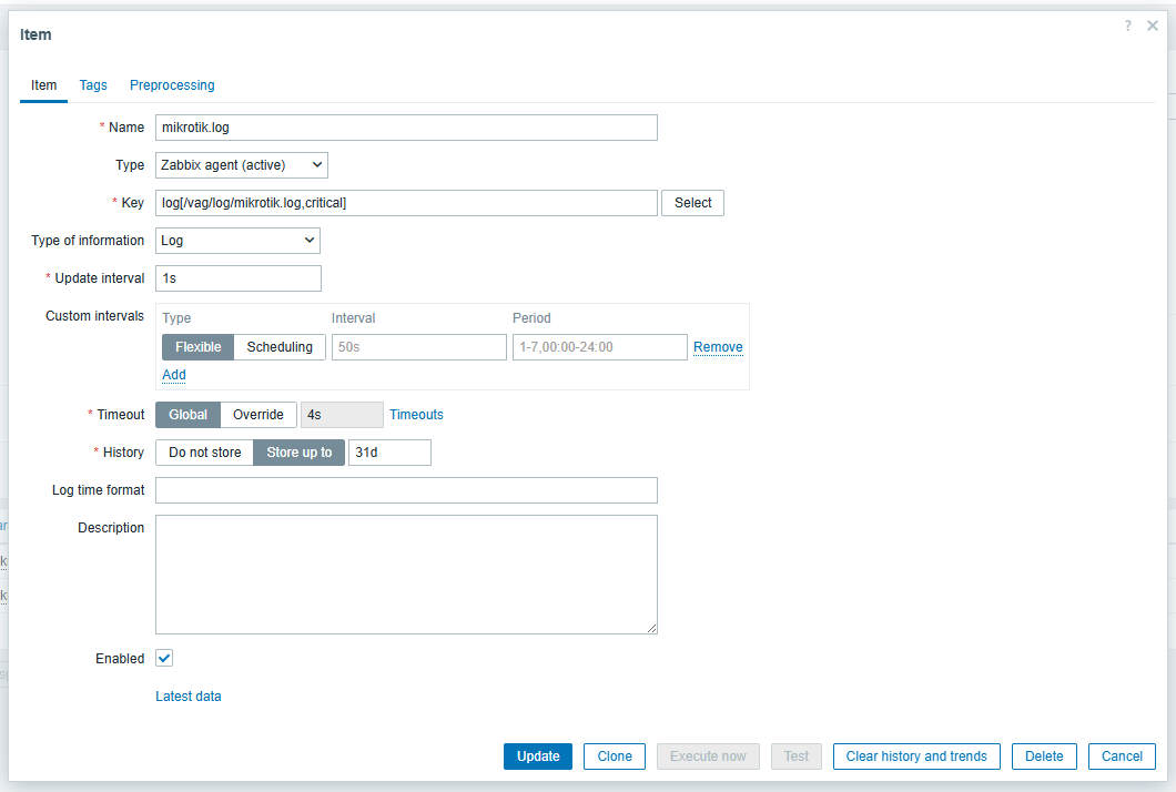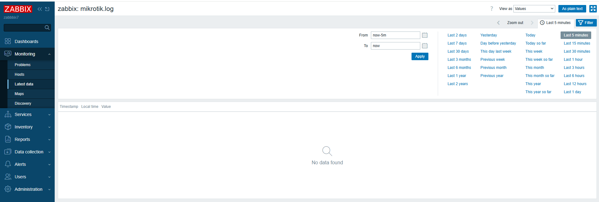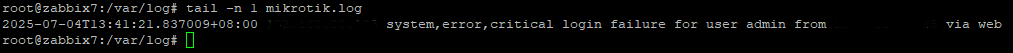 After upgrading from zabbix 4 to zabbix 7.2, I want to monitor the log of mikrotik. I have sucessfully sent logs from mikrotik to zabbix 7.2, but zabbix 7.2 cannot monitor the log and show nothing(see attached photos). How do I solve the problem?
