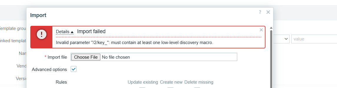 I am attempting to import a Zabbix template file originally created in Zabbix 4.2 into a Zabbix 7.0 instance. However, upon import, an error message is triggered, and the import fails. Despite multiple attempts and troubleshooting, I have been unable to identify the root cause of the issue. ⚙️ Technical Context: