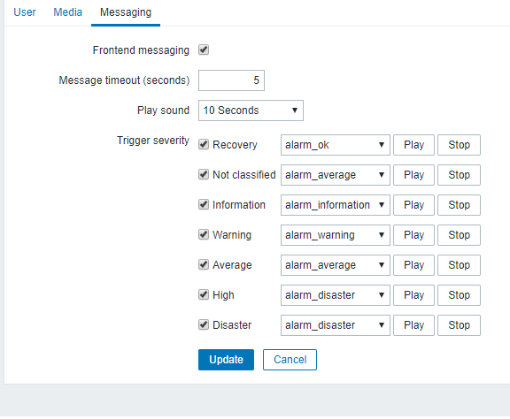 I have installed Zabbix 3.2.3 and configired Messaging options for Admin profile.