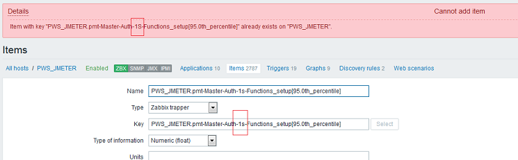 However, when I try to create two different items in Zabbix (names as above) it looks like it's case-insensitive so I recieve error: