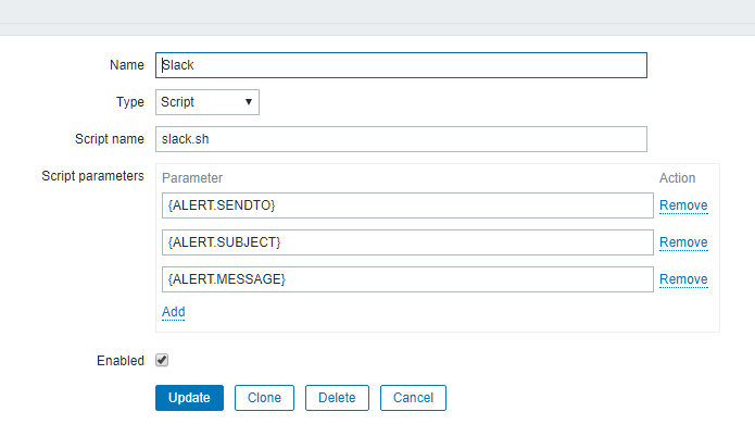 /usr/lib/zabbix/alertscripts/slack.sh: [2] No such file or directory