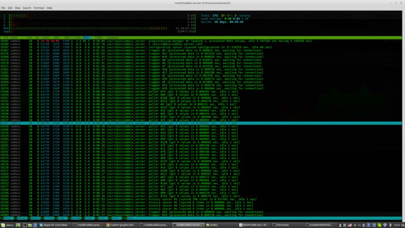 Also, I noticed that my server has low value cache effectiveness. Graphs shows that server on average has about 800vps, while I saw that in other, much smaller environments, Zabbix Server used more then 5-10kvps... ValueCacheSize parameter in zabbix_server.cfg is set to 2G but, I tried different sizes, from 1Mb to 5G and in all cases, when I looked at "Zabbix Cache Usage % free" graph, I Value Cache Size was always 100% free, even with 1M ValueCacheSize...