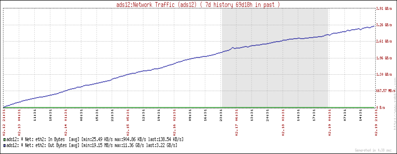 [B]RX bytes:1381256643448 (1.2 TiB) TX bytes:1959423311117 (1.7 TiB)[/B]