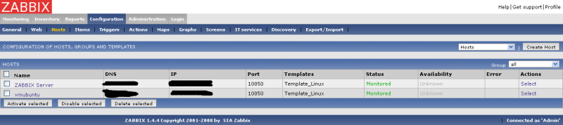 No agent is seen by the server, I've got an 'Availability : Unknown' (see image enclosed). And of course, no datas is collected.
