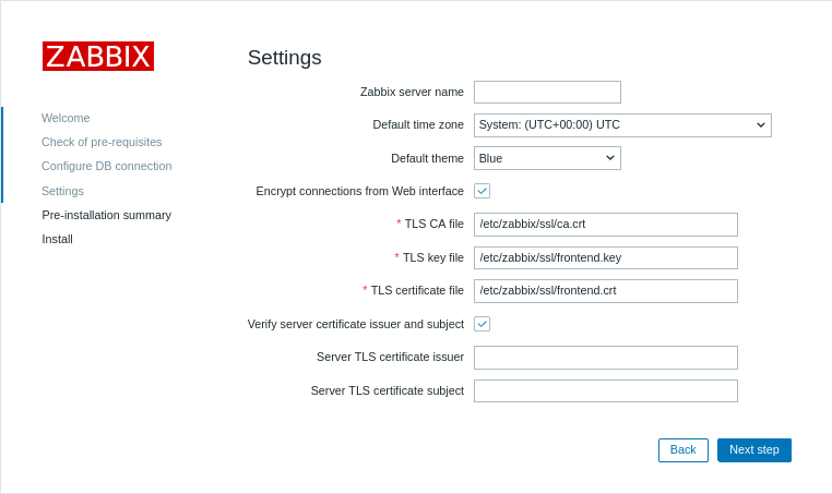 4. Configure Zabbix frontend.